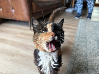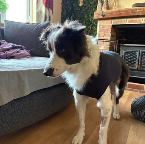 Maya went in for her spay procedure during this month and also a small lump removal on her back. We had previously been told it was nothing sinister so decided to remove it at the same time as her spay to avoid multiple anaesthetics and surgeries. Whilst she was in surgery they also noticed a chipped tooth and so removed the root to avoid infection. Maya came out of the vets looking a little dazed and sporting some lovely pyjamas! She struggled that night at home and the next morning had lost her appetite, refused to take her medication and wasn't drinking either. She ended up going back to the vets and they found she had a high fever so kept her in for a day to try and bring it down. When she arrived home she was much perkier but was still a pain with trying to take her medication so we resorted to a different food and some very smoky sausages to tempt her. This worked really well and Maya started to get better... much better... Maya decided to tear out her stitches and ended up back in the vets for staples which she subsequently managed to rip out after bursting her inflatable collar and ripping through her body suit. Maya went into the vets for a forth time for new stitches and a new buster collar which she managed to get off her head within an hour of being home. We have since threaded her identity collar through the inflatable one and so far so good - just over 2 weeks and 5 appointments later and she's almost recovered now! Fingers crossed these stitches last just one more week!