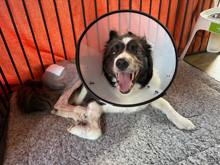 The final thing that happened in June was my own personal dog (and bestest girl in the whole wide world) had her first Total Hip Replacement surgery. This wasn't meant to be happening until the end of July but was brought forward due to absences in the surgical team due to pre-planned holidays in August. Nova had her right hip replaced due to her diagnosis of bilateral hip dysplasia in October last year. The vets believe this isn't hereditary as her litter mate isn't showing signs and the hip scores of her parents are exemplary, they instead believe it was brought on by a lack of key nutrients as a young pup - weened off mum too early and raw fed from 4-8 weeks. Despite our efforts at managing and preventing it from developing further after she showed her initial symptoms, Nova couldn't live a full, happy life free from pain without the replacement of both hips. Her second should be done next year if she makes a full recovery with this one. So far she is being absolutely fantastic. The vets are really happy with her progress and use of the leg so far and her stitches are due to come out soon. She should be able to start back with her physiotherapist in a few weeks and then her hydrotherapy in a few months all being well. I'll keep you all updated on her progress as she recovers over the next few months.
